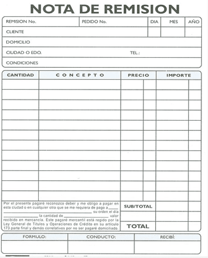 Este es un formato que se entrega junto con la mercancía para que el cliente confirme su correcta recepción. Generalmente incluye los siguientes datos: